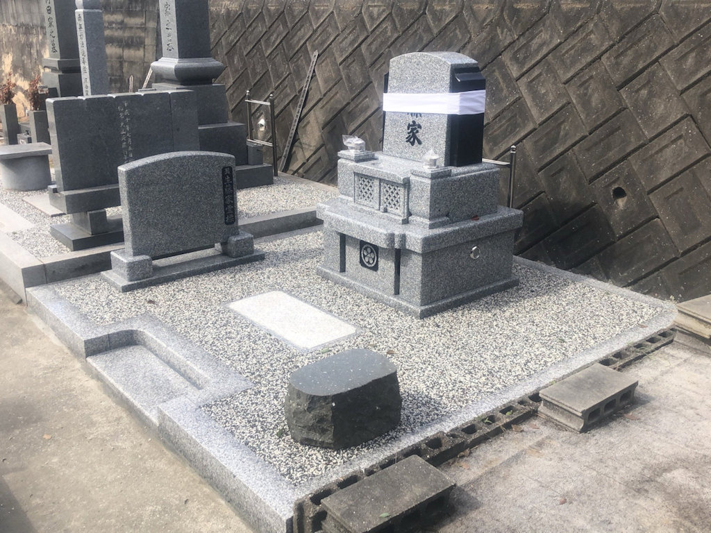 霊園にて納骨させていただきました。区画は1.5m×1.5m。 石塔は地上納骨型となっております。 洋墓の人気商品となります。