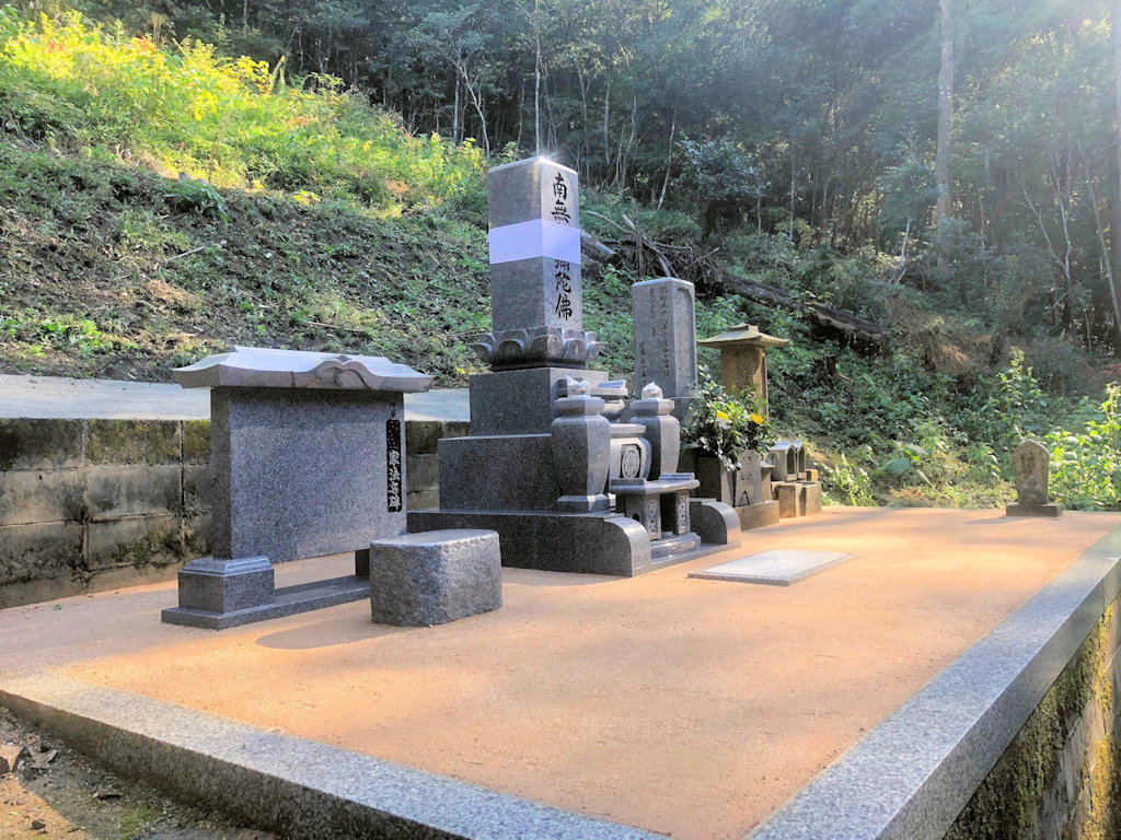 墓地にて納骨。区画は3.0m×2.0m。古墓をリフォームして、新たな新規墓とご先祖様の古墓を配置しております。